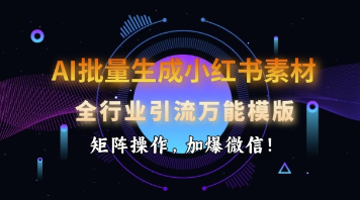 AI批量生成小红书素材,全行业引流万能模版,矩阵操作,加爆微信